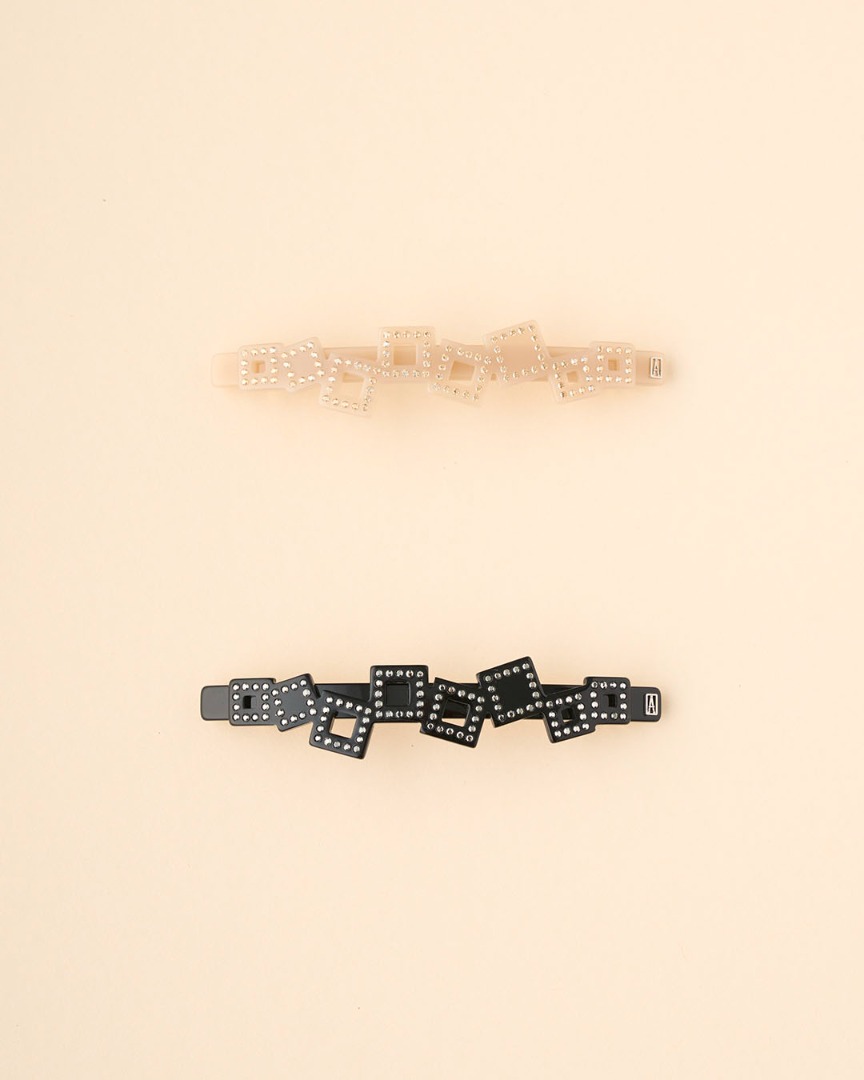 スクエアシェイプのモチーフがリズミカルに並んだバレッタ。